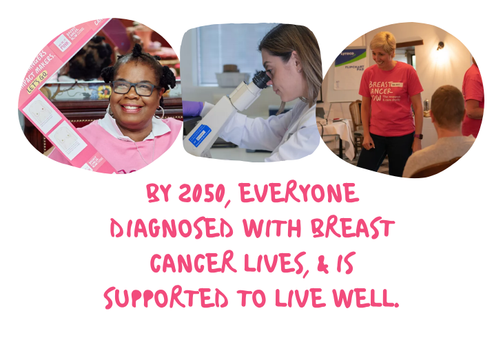 Support Breast Cancer Now means standing with everyone affected by breast cancer, and helping to fund breakthroughs in science, making sure people have somewhere to turn for support, and pushing for a future where no life is lost to breast cancer.